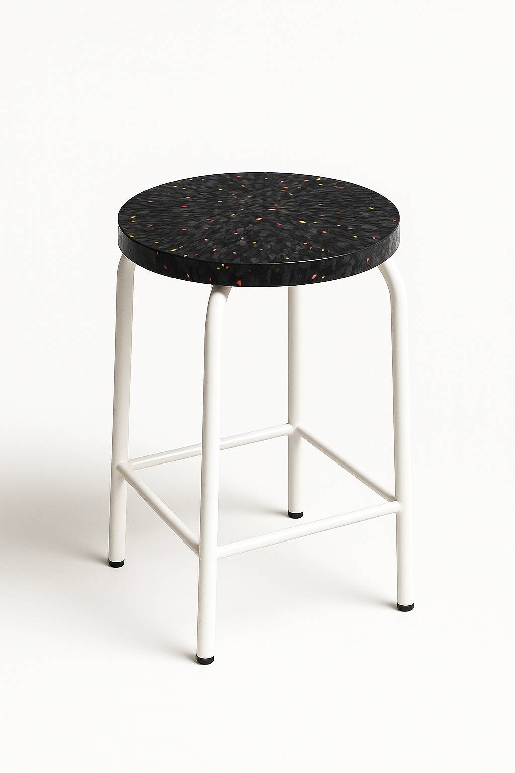 座面元素材:リサイクルペレット(農業用フィルムなど)、ペットボトルキャップ